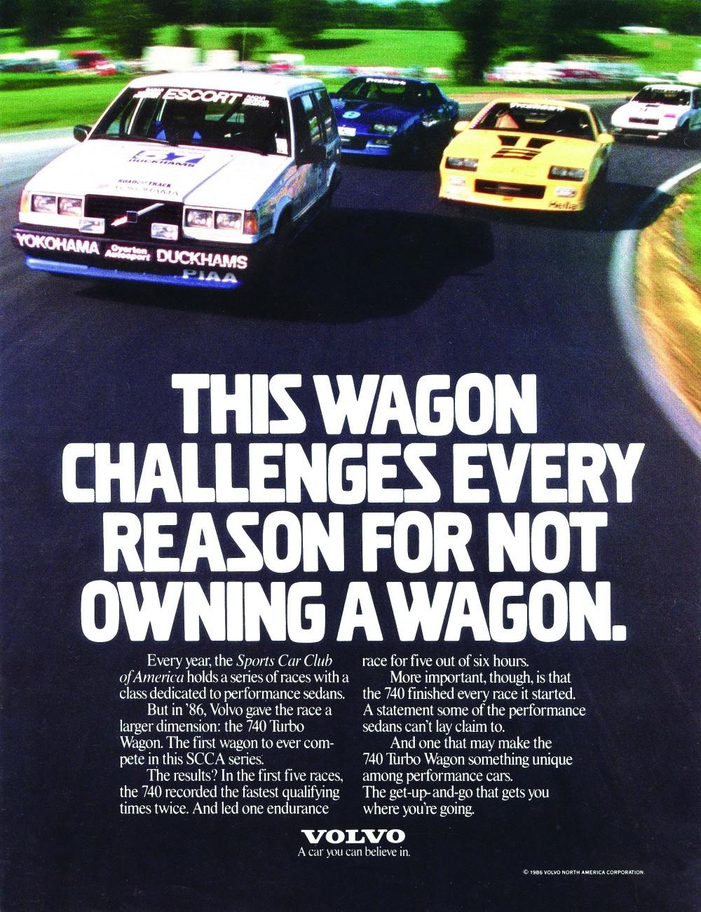 Volvos satsning 1994 med 850 herrgårdsvagn i den brittiska standardvagnsserien BTCC var inte första gången det tävlades med Volvokombis. 1986 tävlade Overton AutoSport i Sports Car Club of Americas långloppsserie med 740 Turbo herrgårdsvagn.