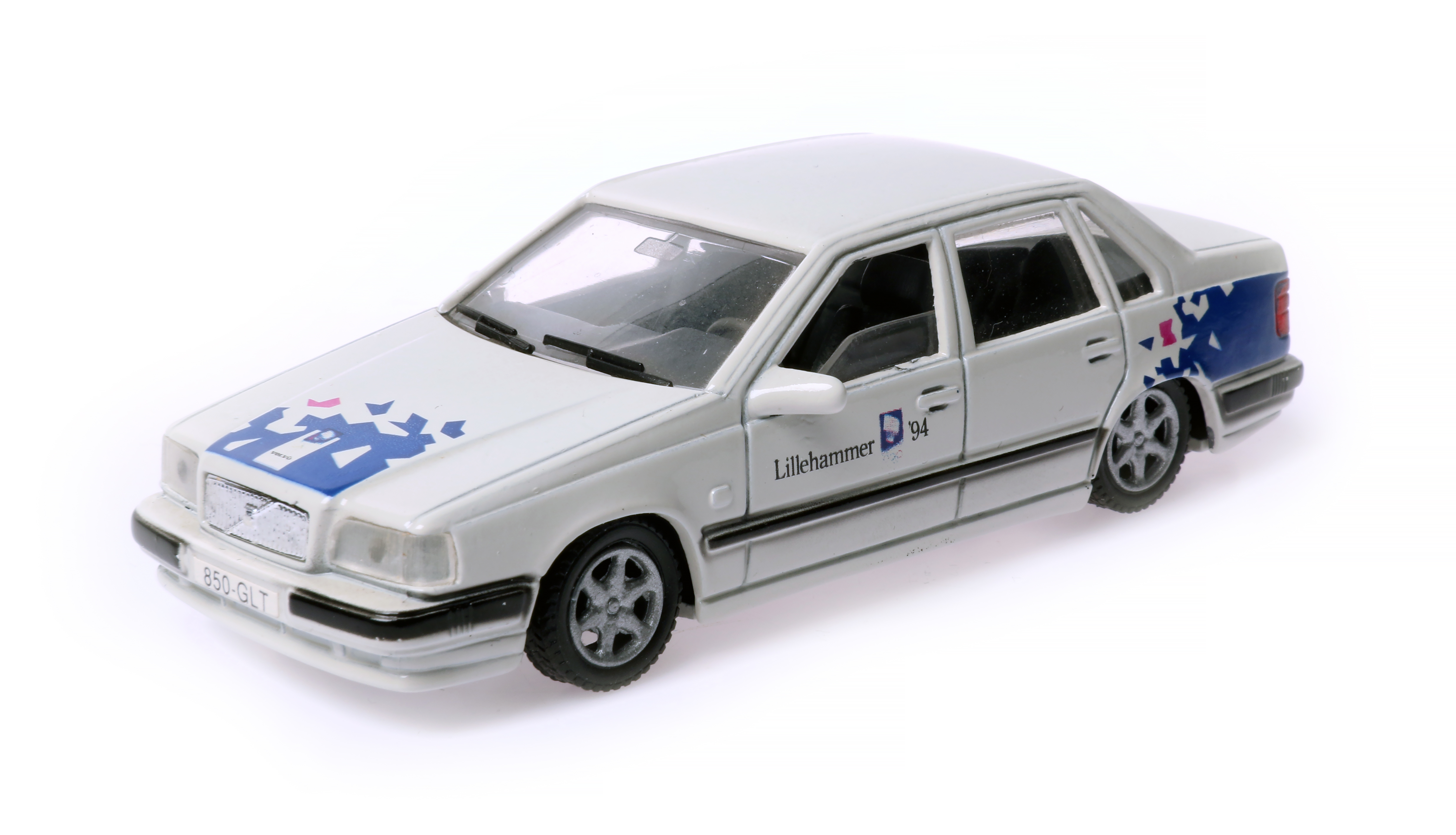 Modellbil från Nederländska AHC Models som visar den speciella dekoren som bilarna från Volvo fick vid OS i norska Lillehammer.