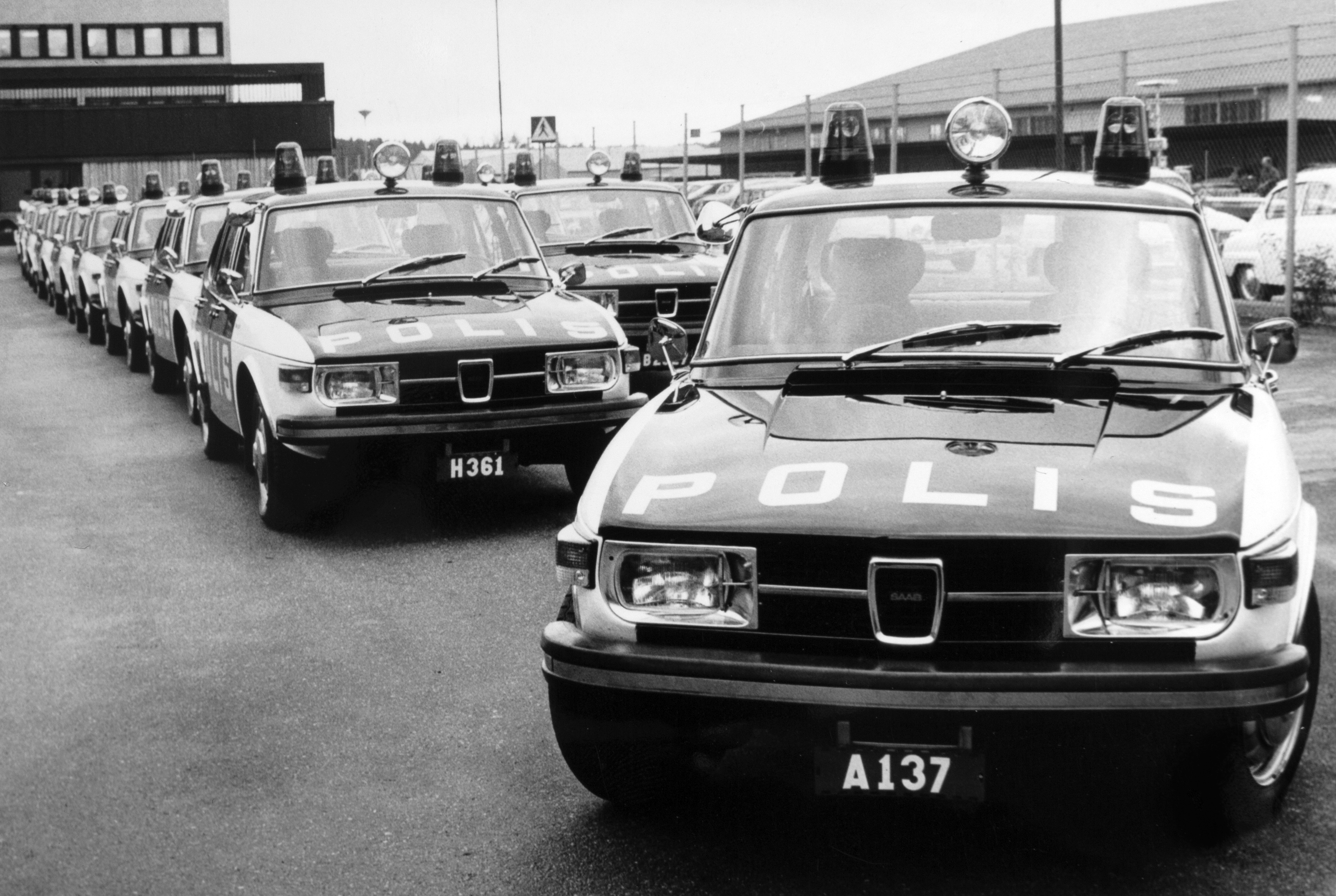 Bild från första leveransen av Saab 99 i polisbilsutförande. (Foto: Saab Car Museum)