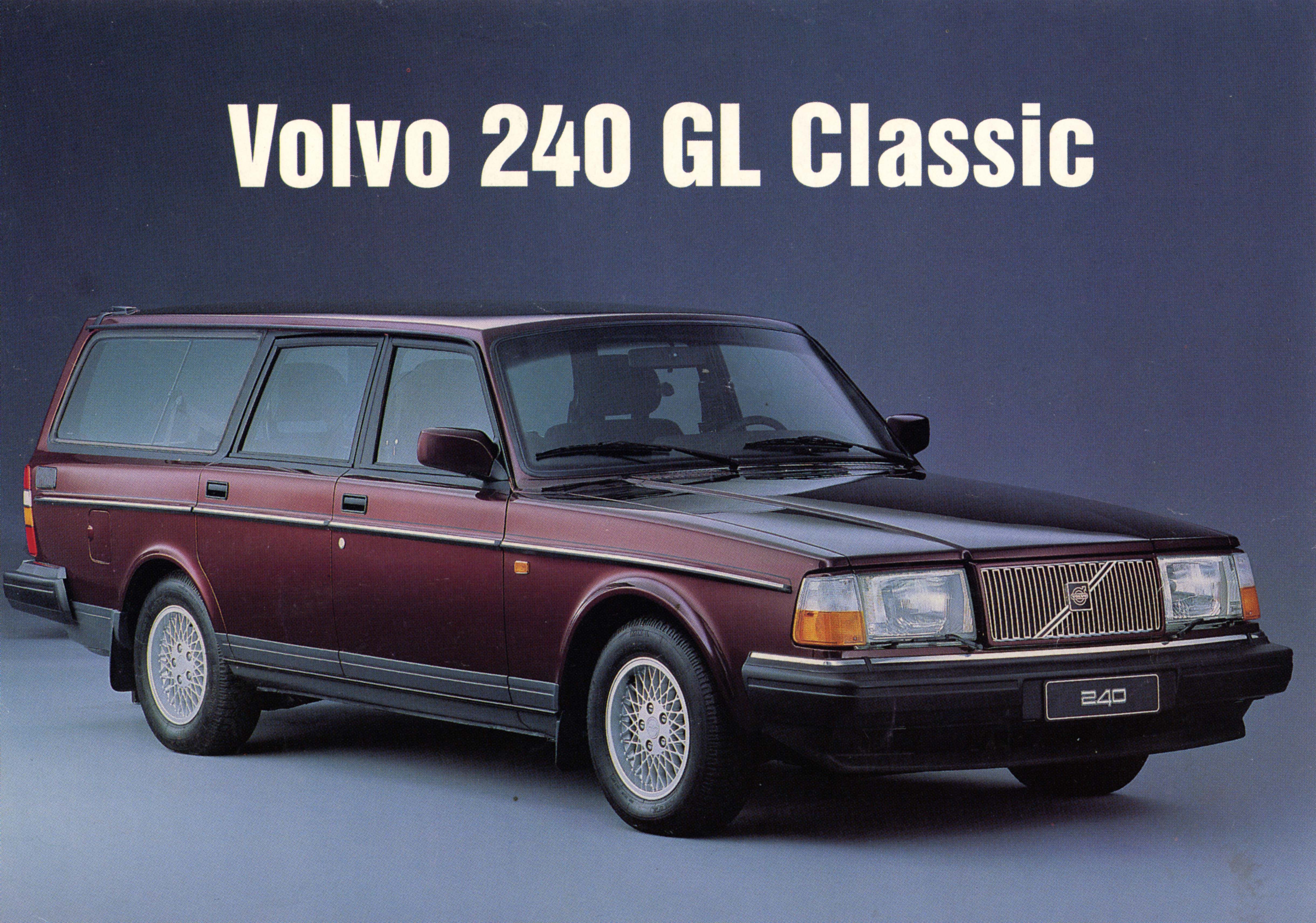 Framsidan på ett vykort som man kunde använda för att göra en beställning på en av de sist tillverkade Volvo 240 Classic 1993.