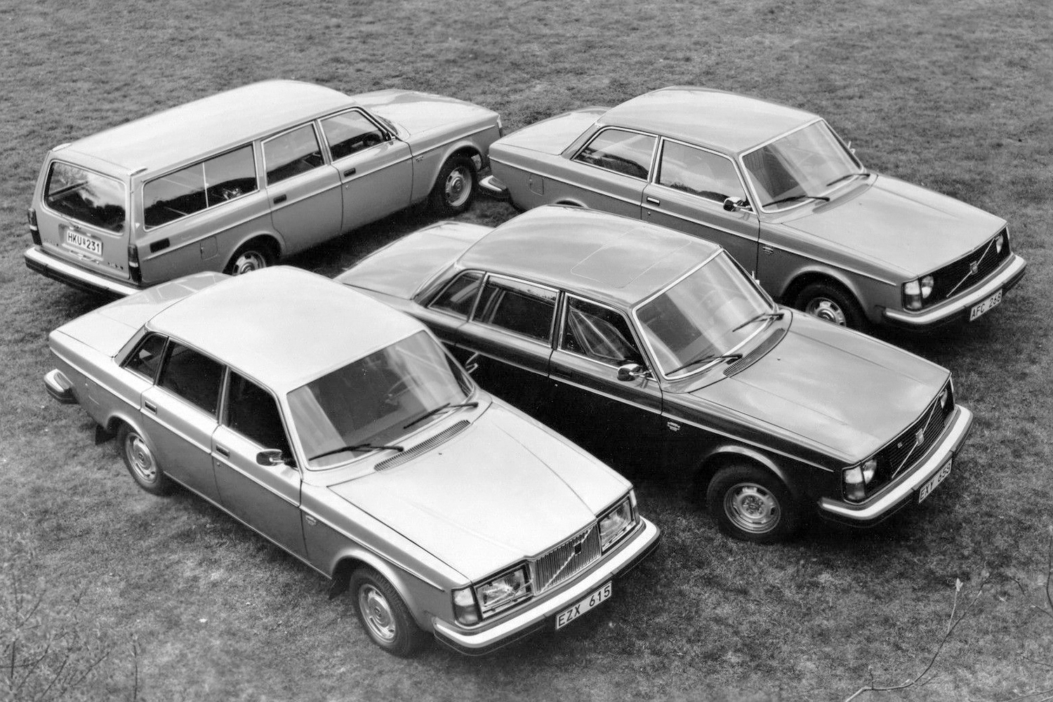 En av de första press/broschyrbilderna för Volvos nya modellserie med 242, 244, 245, och 264 årsmodell 1975. (Foto: Volvo Cars)