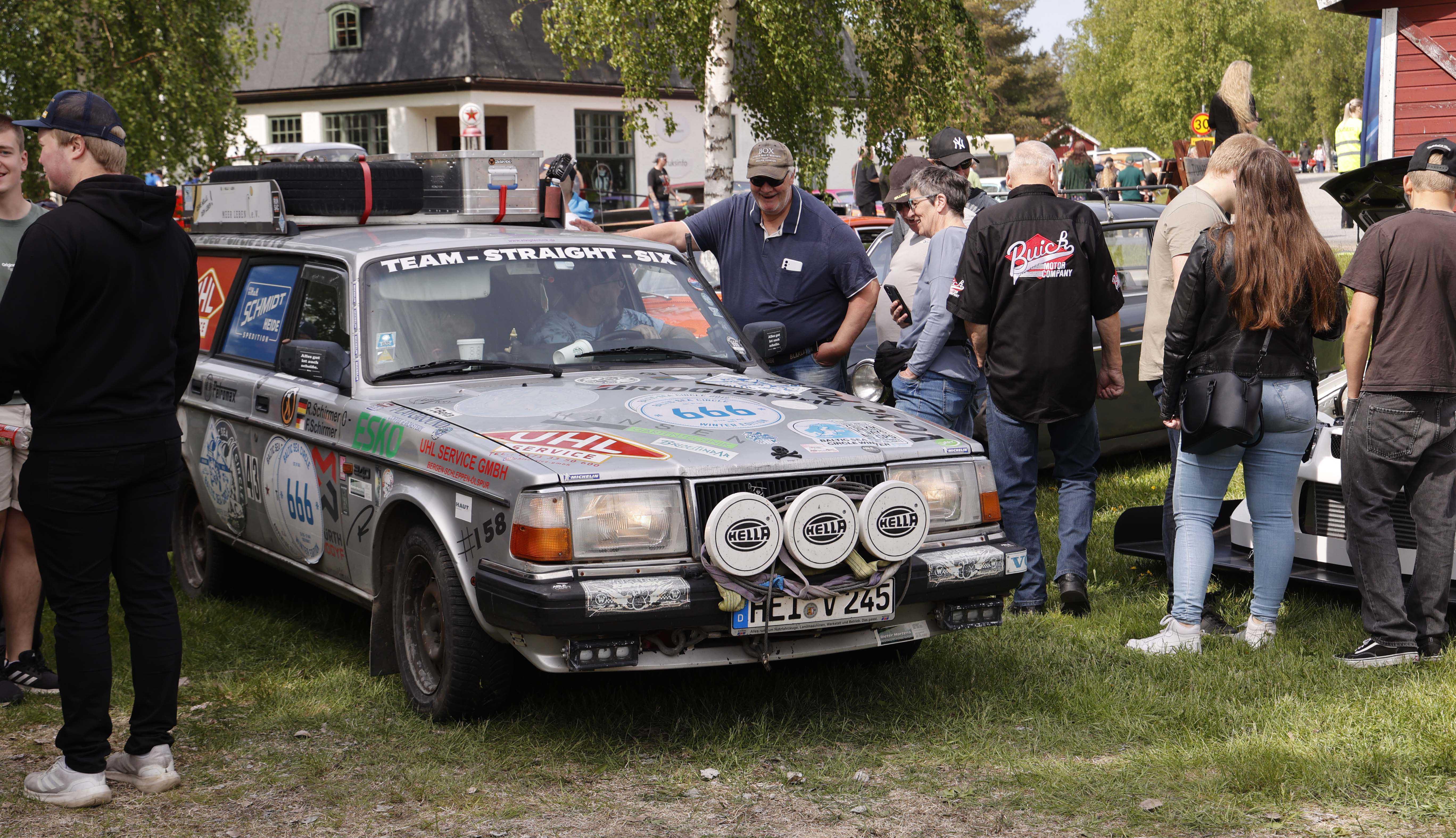 Tysk Volvo 240 på långresa! Som så många andra tyska Volvoentusiaster så har ägaren sett till att få den lämpliga slutsiffran 245 i registreringsnumret.