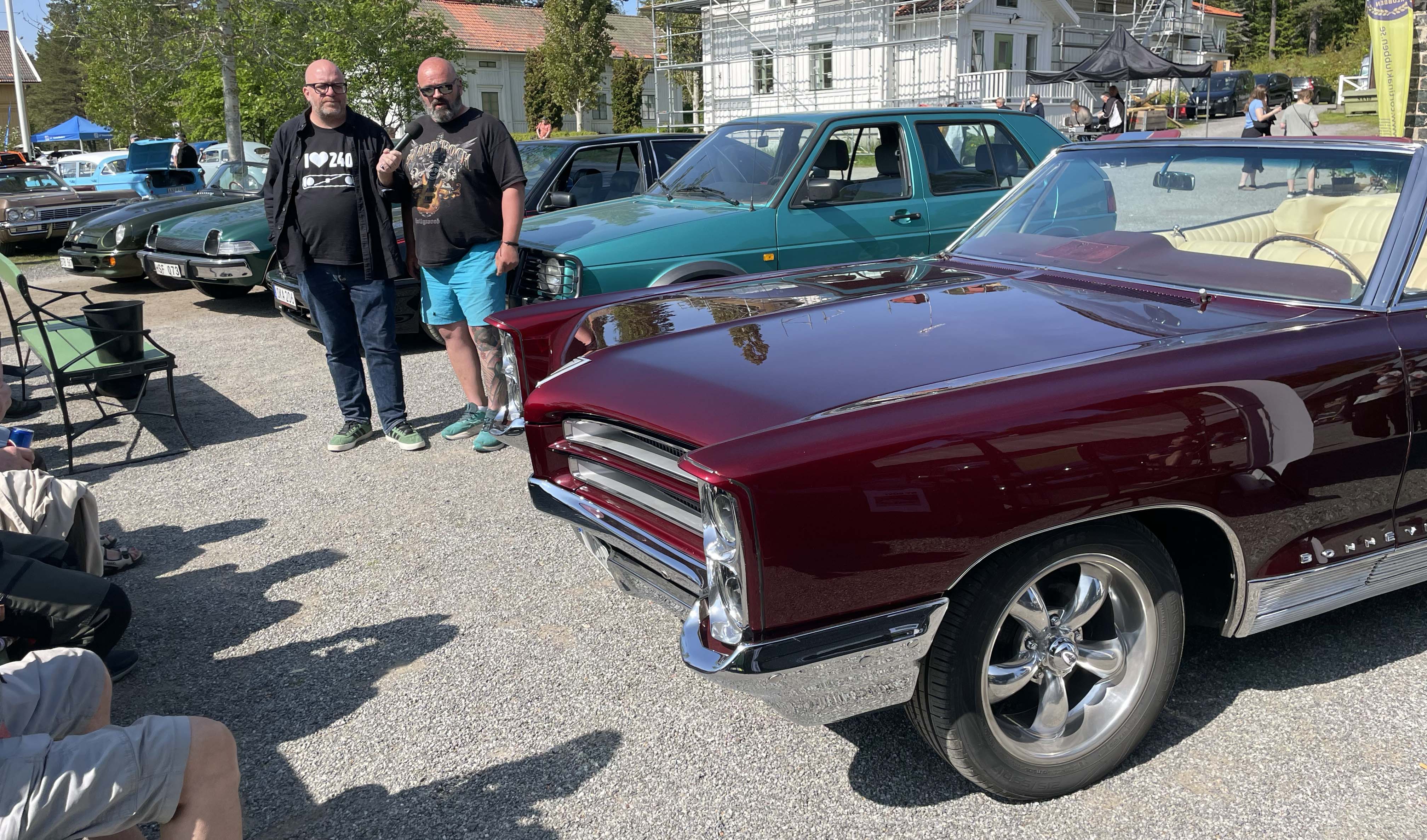 Folkets val 2025 var Charlie Nyblads Pontiac Bonneville 1966. Här blir han intervjuad av konferenciern Fredrik Nyblad.