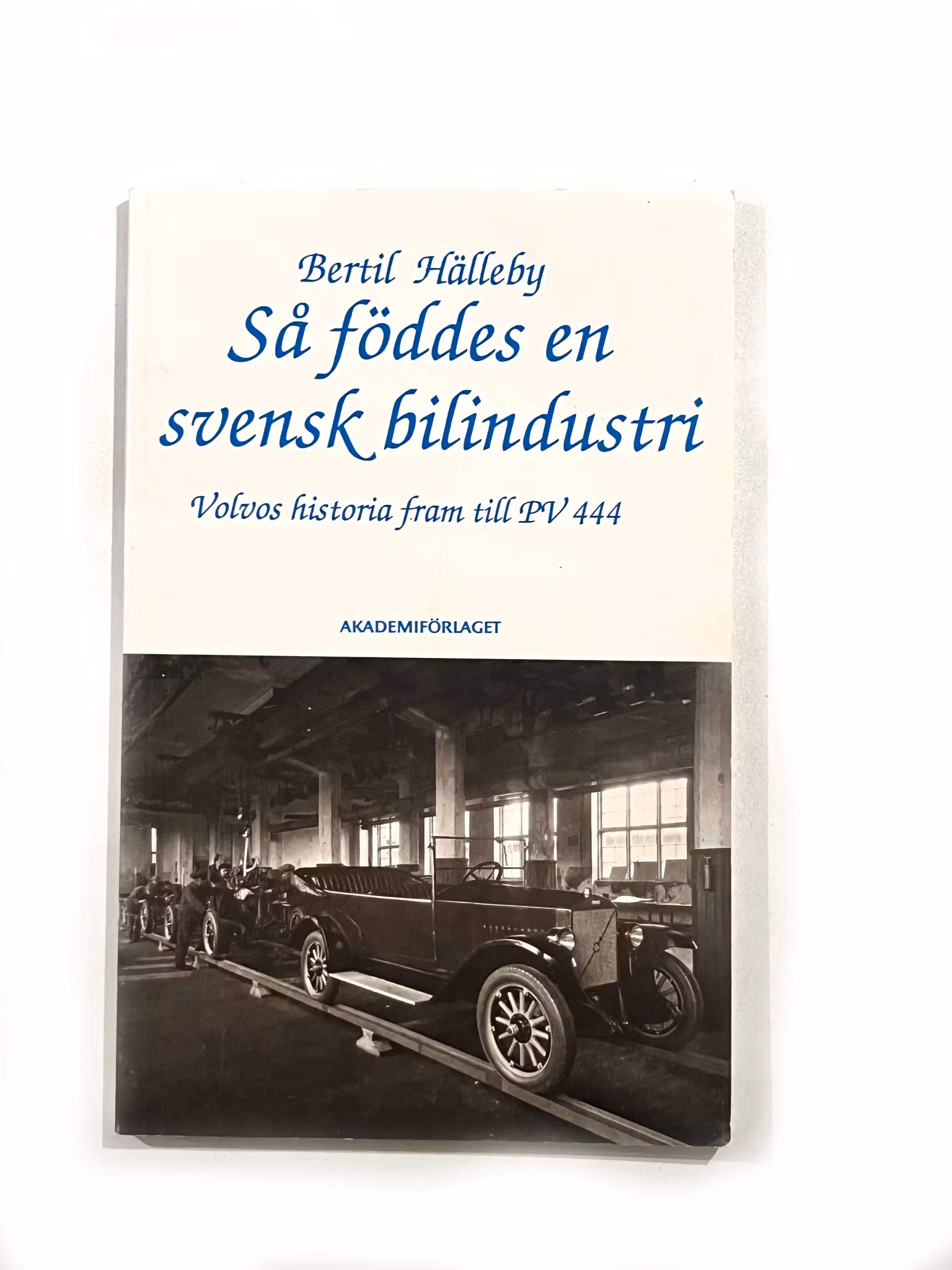 Bertil Hällebys "Så föddes en svensk bilindustri" berättar om Volvogrundarna Assar Gabrielsson och Gustaf Larson och om hur Volvo startades och utvecklades fram till och med PV 444. 104 sidor.