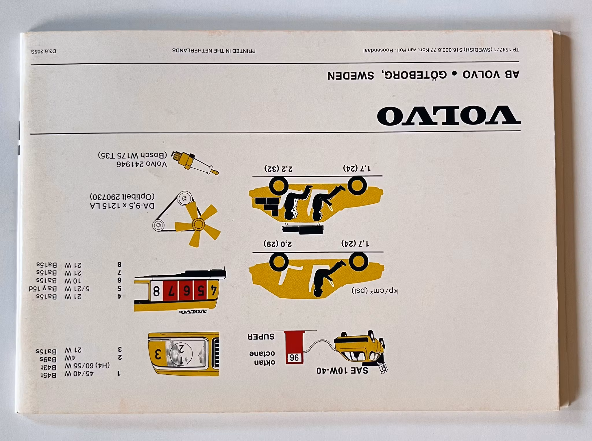 Instruktionsbok för Volvo 343 årsmodell 1978. Språk: Svenska. Mycket gott skick.