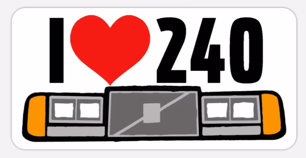 Klistermärket för dig som älskar Volvo 240! Motivet föreställer en 240 med amerikanska Sealed Beam-strålkastare och hög front - den så kallade näbbhuven. Tryckt på matt vit plast, 15 cm bred och 7,5 cm hög. Framtagen av Raketbild Förlag.