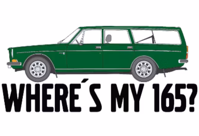 Klistermärke med en Volvo 165 - herrgårdsvagnsversionen av 164 som Volvo aldrig tillverkade men som ändå finns! Tryckt på vit plast, 10,5 cm bred och 7,4 cm hög. Framtagen av Raketbild Förlag i en begränsad serie.