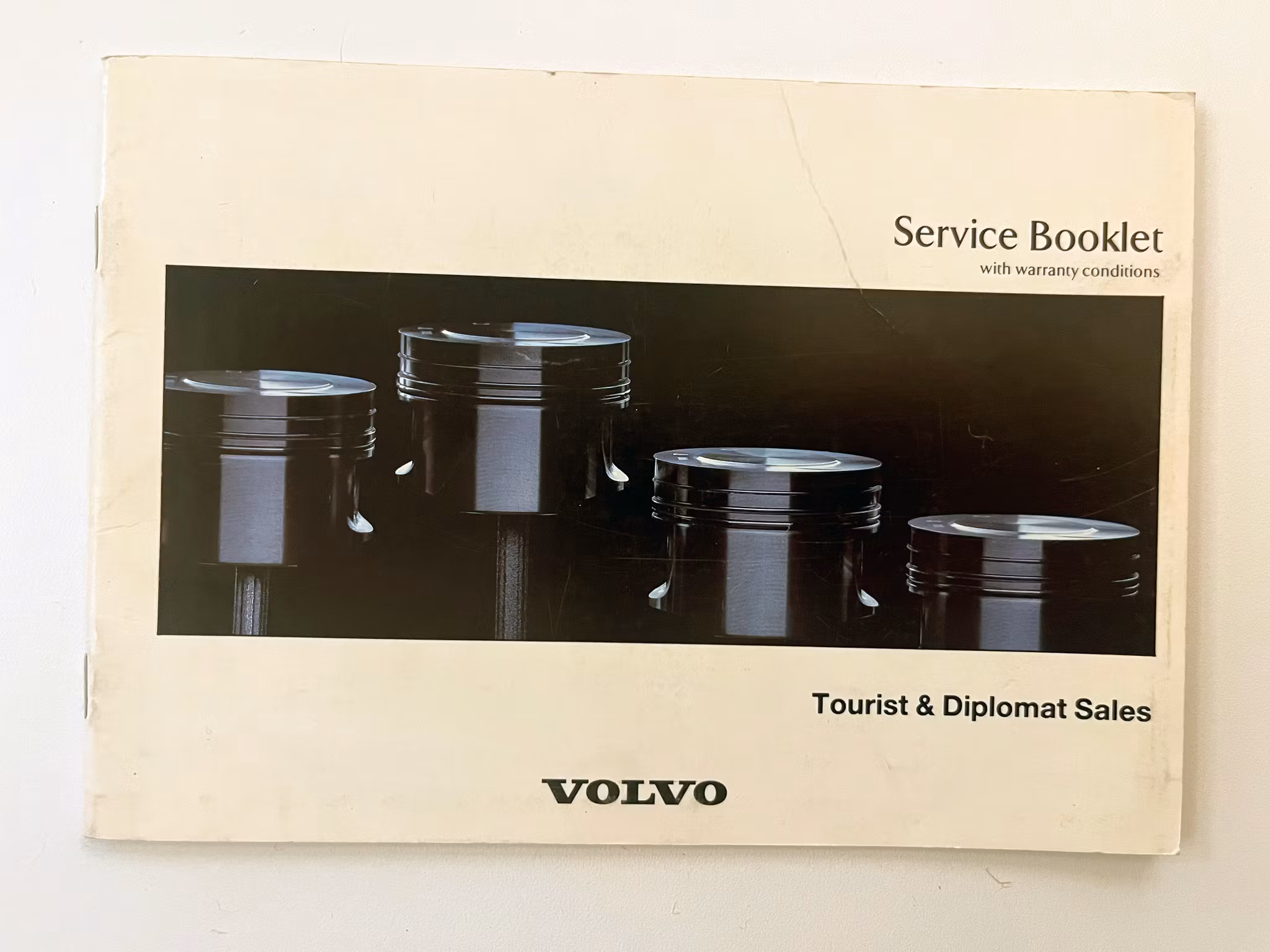 Helt oanvänd service- och garantibok tryckt 1991 för bilar sålda genom Volvos Tourist & Diplomat sales. Språk: engelska. 25 sidor.