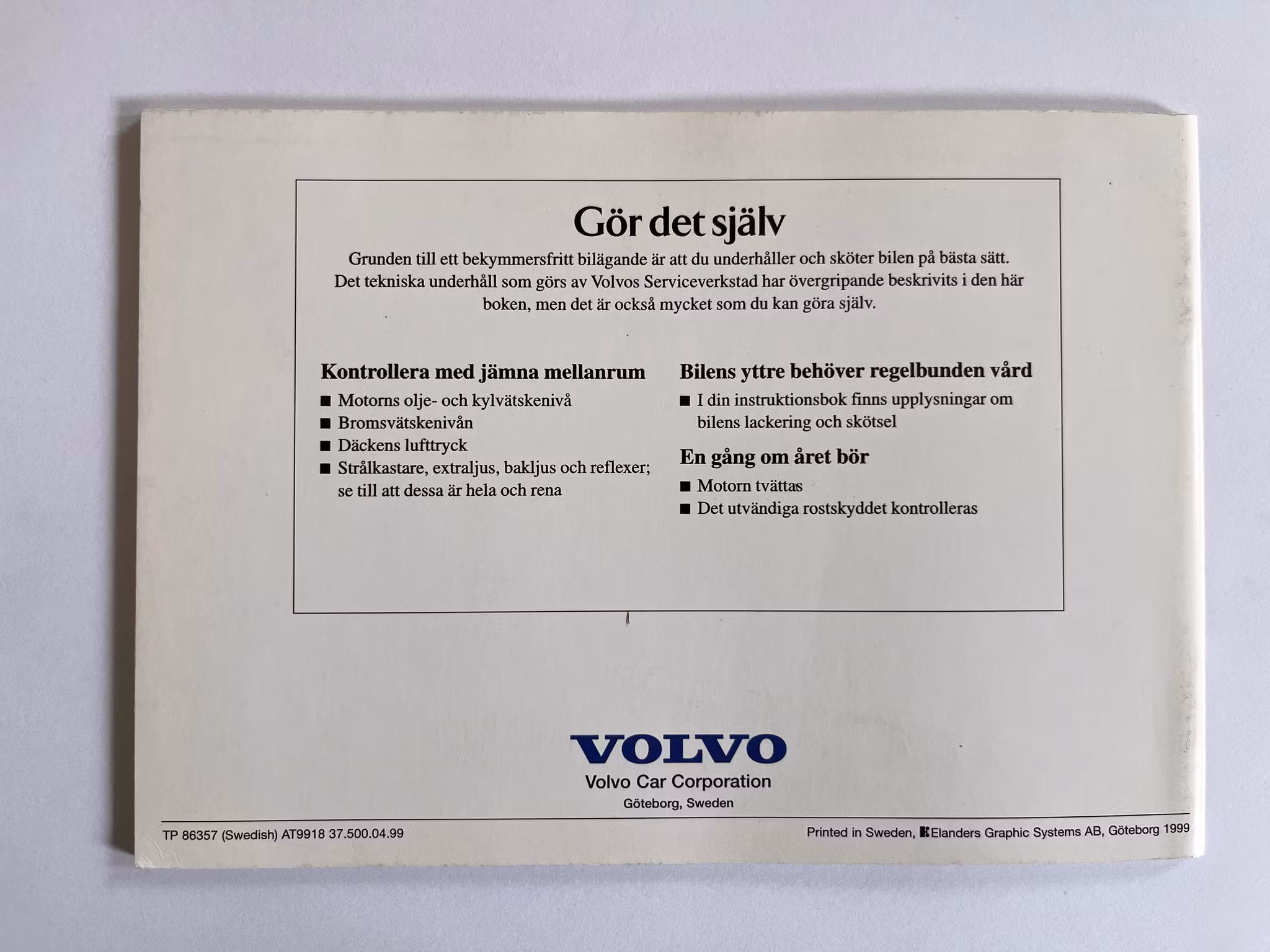 Helt oanvänd service- och garantibok tryckt 1999 för Volvo S40, V40, S60, C70, V70, S80. Språk: svenska. Mycket gott skick