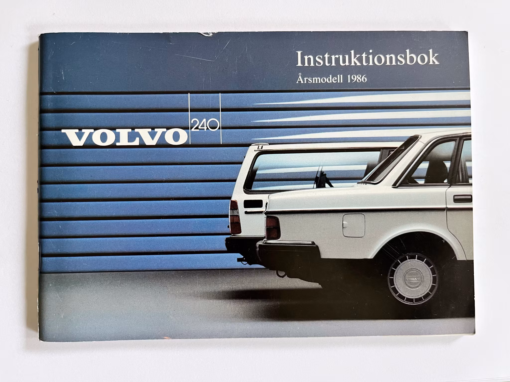 Instruktionsbok för Volvo 240 årsmodell 1986. Språk: svenska. 109 sidor. Mycket gott skick.