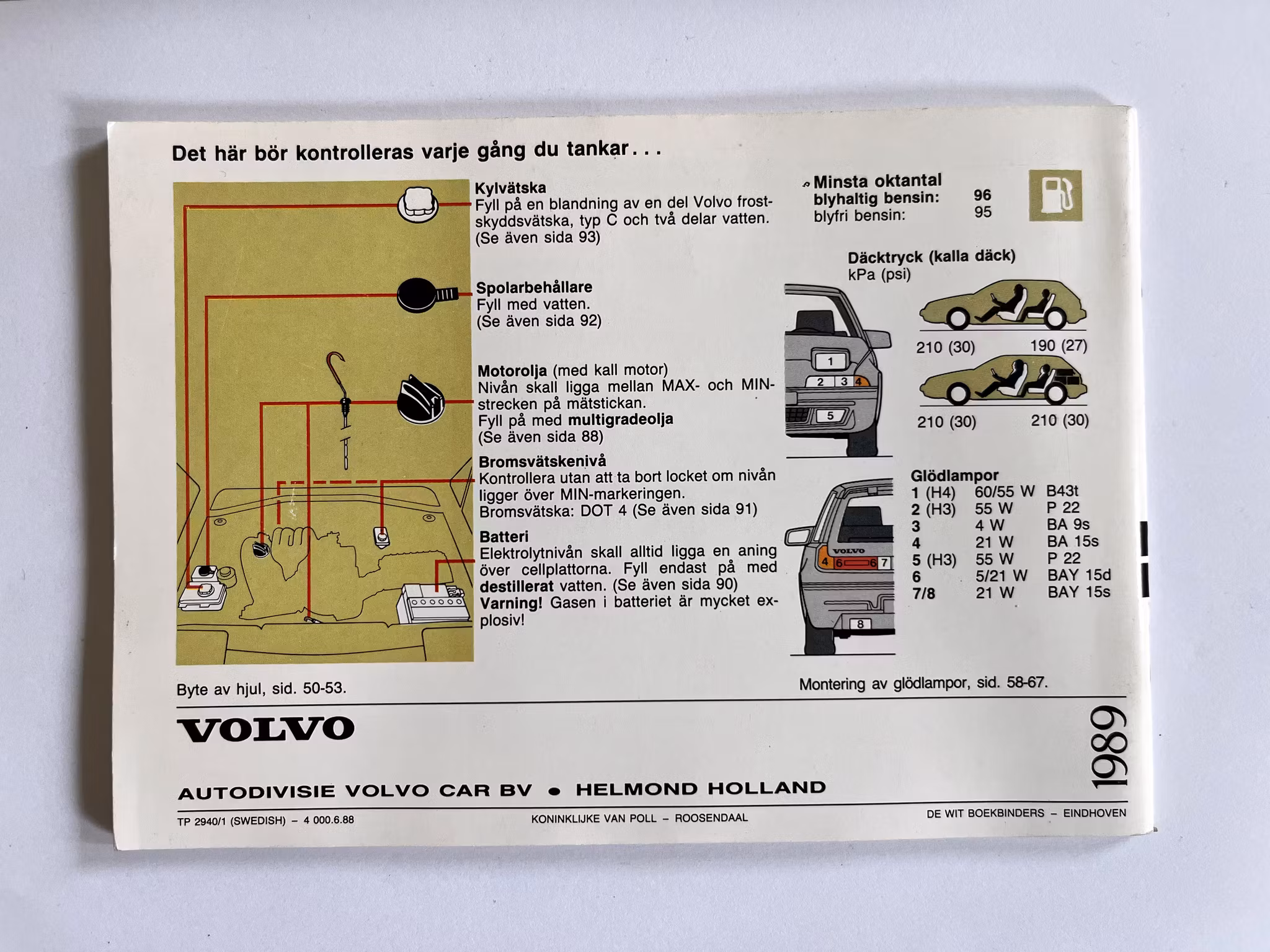 Instruktionsbok för Volvo 480 årsmodell 1989. Språk: svenska. 105 sidor. Mycket gott skick.