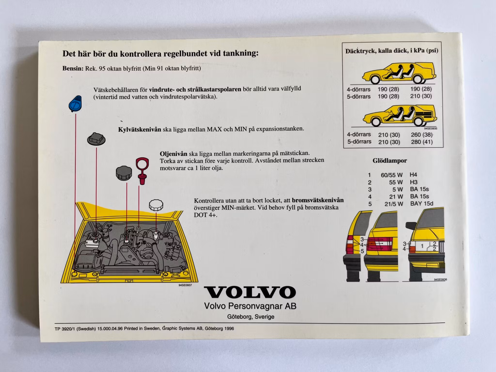 Instruktionsbok för Volvo 940 årsmodell 1997. Språk: svenska. Mycket gott skick.