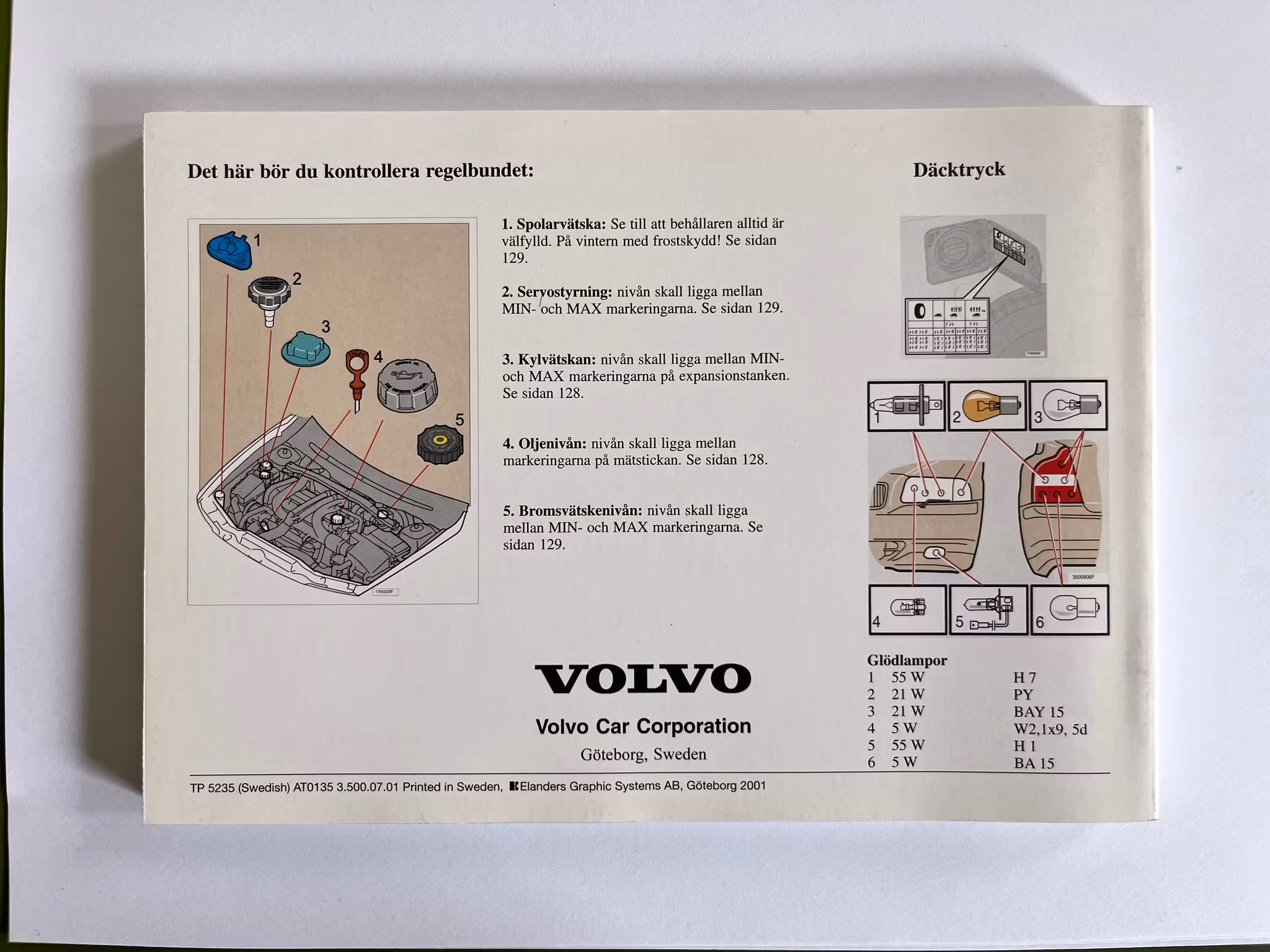 Instruktionsbok för Volvo S80. Tryckt 2001. Språk: svenska. 193 sidor. Mycket gott skick.