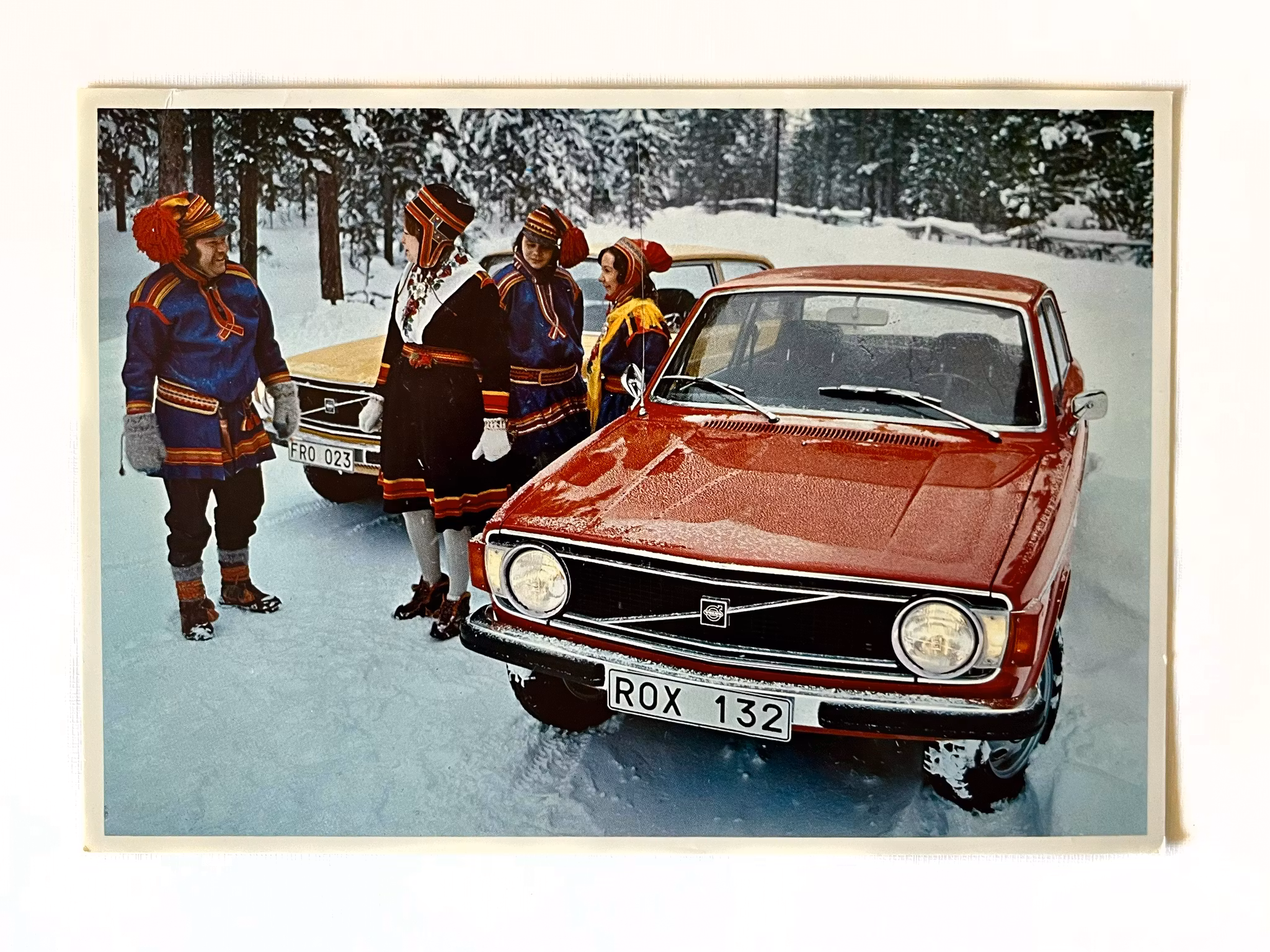 Vykort tryckt 1973 av Volvo föreställande 140-serien i oanvänt skick. Storlek 15x21 cm.